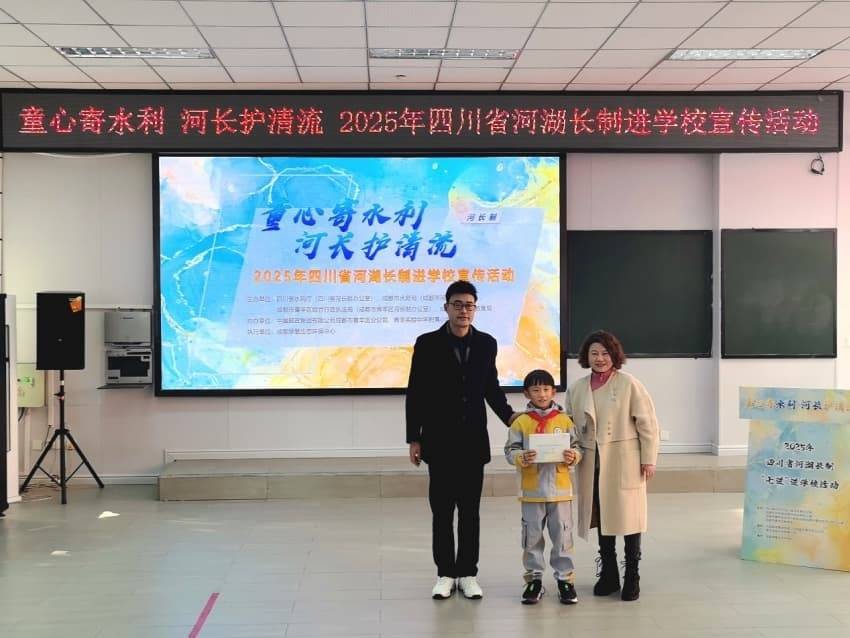 现场播放的《2025年“水韵书信·绿意未来”第四届青羊区水情教育主题绘画比赛宣发视频》,孩子们用稚嫩的笔触描绘出心中的清澈河流、美丽湖泊,将现场气氛推向一个小高潮。