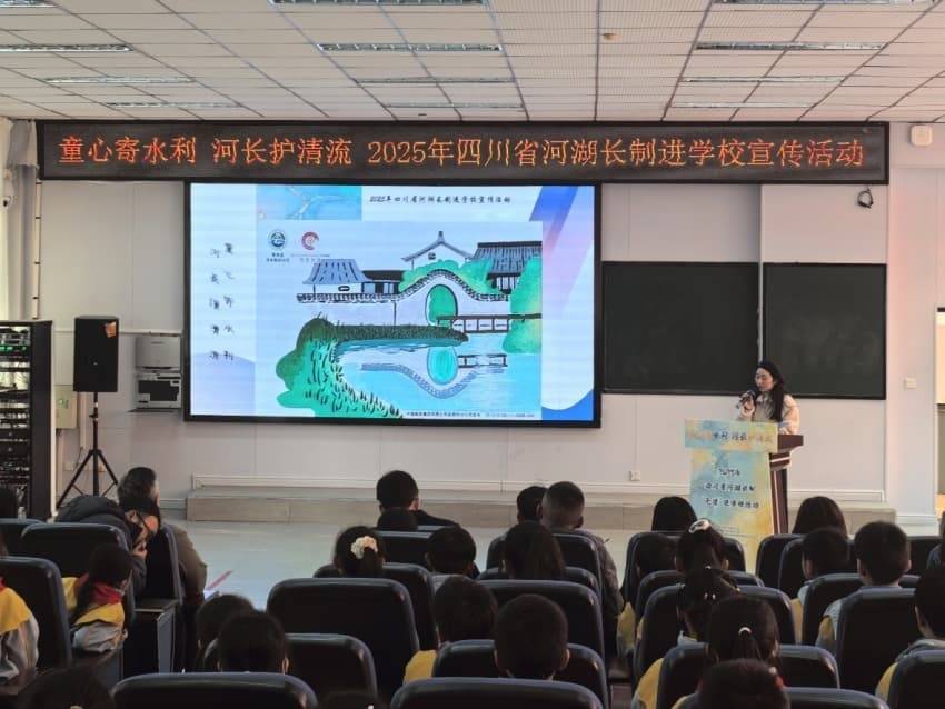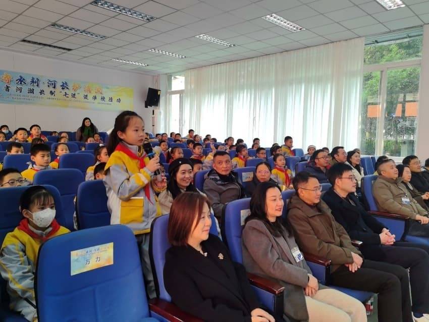 12月16日,青羊实验中学附属小学阶梯教室,学生代表们用一场精彩的表演为“童心寄水利·河长护清流——四川省河湖长制走进青羊区校园”拉开序幕。本次活动由四川省水利厅、成都市水务局、成都市青羊区河长制办公室、青羊区教育局联合主办,中国邮政集团有限公司成都市青羊区分公司、青羊实验中学附属小学协办,来自省、市、区的水务工作者、邮政工作人员及在校师生百余人参加。