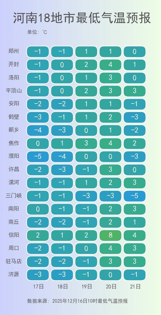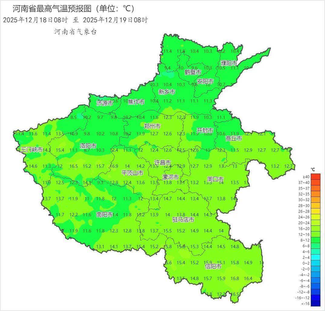 而本周后期(19-21日),一股较强冷空气的到来,河南气温又将开启“过山车”模式:本周五先来一波明显升温,多地午后气温升至15-18度,信阳等地甚至超过20度!暖意短暂回归后,随着冷空气继续扩散南下,周末气温又将直线下跌6度左右,本周日全省最高气温仅有个位数,重现先升后降的天气“戏码”,注意关注气温变化,及时添衣保暖!